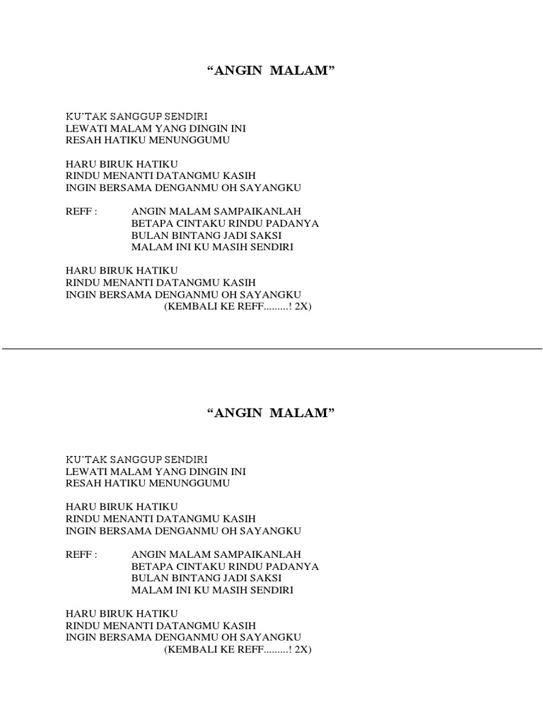 Lirik Lagu Oh Angin Bisikan Padanya Kucinta Dia Angin Rindu Novelas